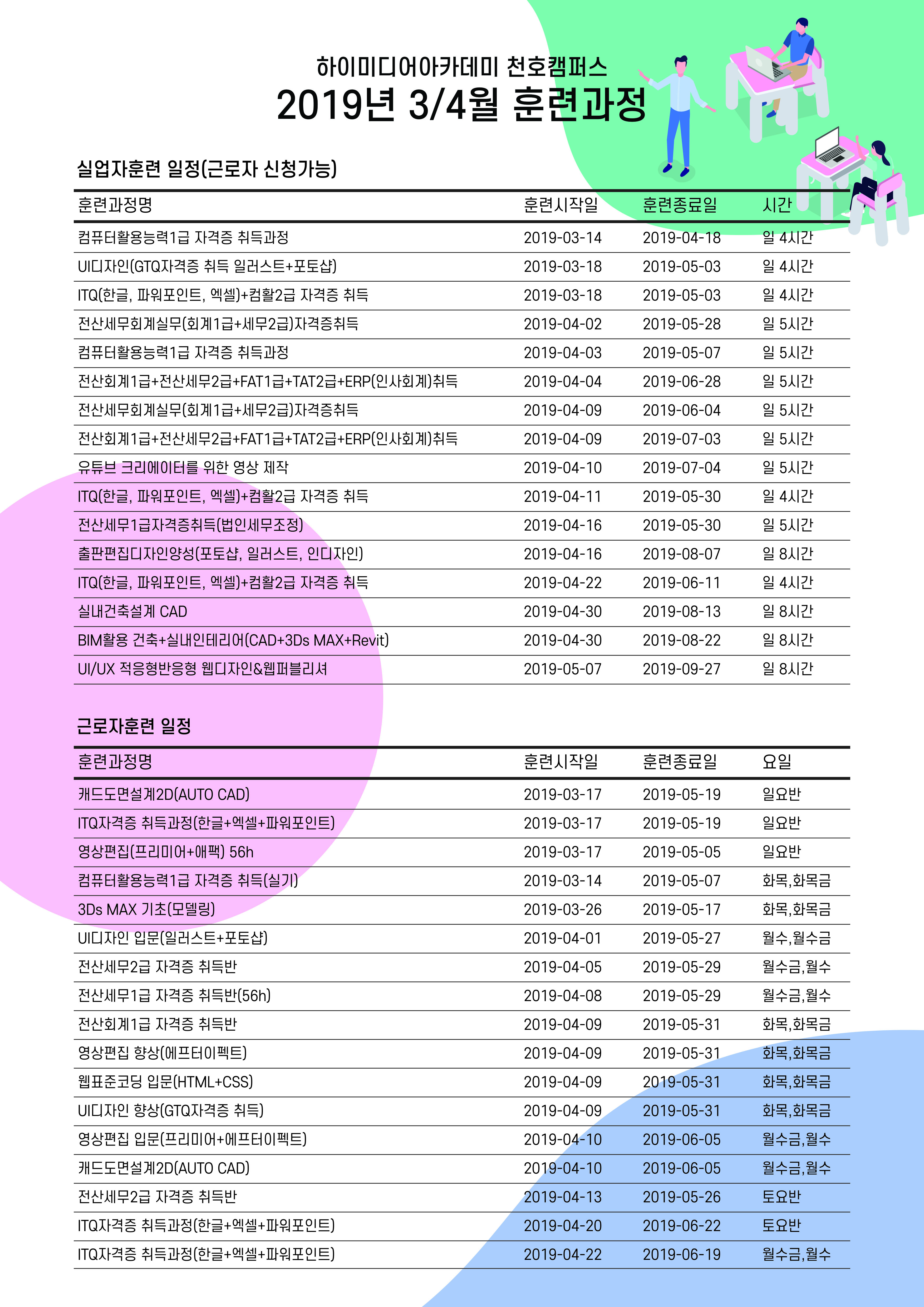 하이미디어 천호점 2019년 5월 개강일정